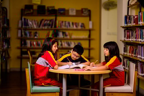 It is a resource centre for both individual and collaborative work for students and staff alike. Library lessons are utilised for issuing books to students, as well as for providing opportunities for different activities such as reading sessions, book review competitions, vocabulary and word games.