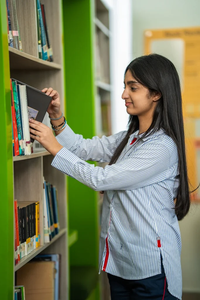 It is a resource centre for both individual and collaborative work for students and staff alike. Library lessons are utilised for issuing books to students, as well as for providing opportunities for different activities such as reading sessions, book review competitions, vocabulary and word games.